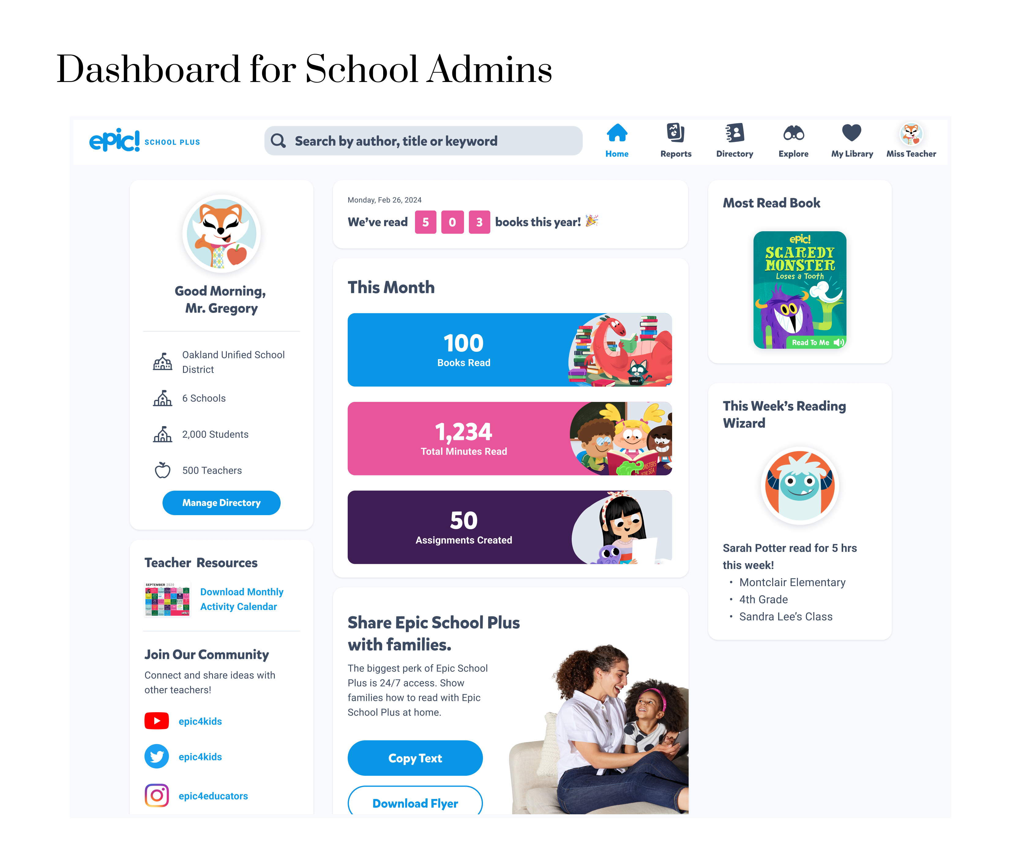 "My kids love Epic books and I'd love to be able to assign them as after school reading homework. It'd be great to extend access time to at least 8pm in the evening."